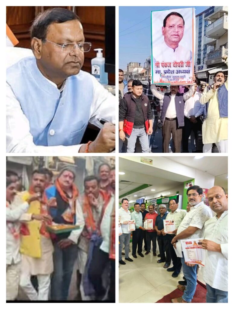 जनपद गोरखपुर माननीय पंकज चौधरी जी को भारतीय जनता पार्टी उत्तर प्रदेश का प्रदेश अध्यक्ष बनाए जाने पर गोरखपुर में हर्ष और उल्लास का माहौल देखने को मिला। इस अवसर पर घंटाघर चौराहे पर विभिन्न व्यापारिक संगठनों एवं भाजपा के कार्यकर्ताओं ने एकत्र होकर आतिशबाजी की, मिठाइयाँ बांटीं और खुशी का इज़हार किया।कार्यक्रम में सर्राफा मंडल, किराना कमेटी, दवा विक्रेता समिति, कपड़ा व्यापारी, रेडीमेड गारमेंट संगठन, मोबाइल एवं इलेक्ट्रॉनिक संगठन सहित अनेक व्यापारिक संगठनों तथा भाजपा के विभिन्न प्रकोष्ठों और मंडलों के कार्यकर्ता शामिल हुए। पूरे आयोजन की व्यवस्थाएं घंटाघर के वरिष्ठ व्यापारी नेता आदरणीय संतोष गोयल जी के सौजन्य से की गईं।इस मौके पर व्यापारियों और आम जनता में जबरदस्त उत्साह देखने को मिला। बड़ी संख्या में व्यापारियों ने एकत्र होकर पंकज चौधरी के प्रदेश अध्यक्ष बनने पर खुशी जाहिर की।कार्यक्रम में व्यापार प्रकोष्ठ भाजपा गोरखपुर महानगर के संयोजक सौरभ कुमार सिंह, सहसंयोजक गौरव गुप्ता, जय वर्मा प्रमुख रूप से उपस्थित रहे।