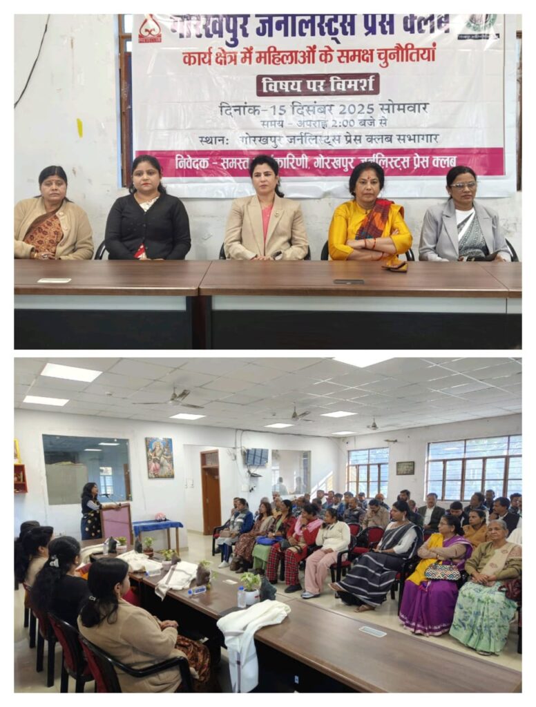 जनपद गोरखपुर कार्यस्थल पर महिलाओं को आने वाली समस्याओं और चुनौतियों से निपटने के लिए उनकी मुखरता सबसे जरूरी है। जब तक महिलाएं सहनशीलता की चुप्पी तोड़कर अपनी बात मजबूती से नहीं रखेंगी, तब तक समस्याओं का स्थायी समाधान संभव नहीं है। यह विचार पूर्व महापौर डॉ. सत्या पांडेय ने व्यक्त किए।डॉ. सत्या पांडेय सोमवार को गोरखपुर जर्नलिस्ट्स प्रेस क्लब के सभागार में ‘कार्यक्षेत्र में महिलाओं के समक्ष चुनौतियां’ विषय पर आयोजित विमर्श कार्यक्रम में मुख्य अतिथि के रूप में बोल रही थीं। उन्होंने कहा कि महिलाओं के संरक्षण के लिए बने कानून तभी प्रभावी होंगे, जब महिलाएं स्वयं जागरूक होकर उनका उपयोग करेंगी। आज महिलाएं हर क्षेत्र में अपनी योग्यता सिद्ध कर रही हैं, लेकिन उन्हें अब भी कार्यस्थल पर भेदभाव, फब्तियों और हीन भावना जैसी चुनौतियों का सामना करना पड़ता है। इन स्थितियों को बदलने के लिए महिलाओं को आत्मविश्वास के साथ आगे आना होगा।कार्यक्रम की अध्यक्षता करते हुए दीनदयाल उपाध्याय गोरखपुर विश्वविद्यालय की राजनीति शास्त्र विभागाध्यक्ष एवं मिशन शक्ति की नोडल अधिकारी प्रो. विनीता पाठक ने कहा कि महिला और पुरुष में मूलतः कोई भेद नहीं है, अंतर केवल शारीरिक बनावट का है। उन्होंने कहा कि प्रतिस्पर्धा की बजाय महिला-पुरुष के बीच सामंजस्य की भावना विकसित होनी चाहिए। महिलाएं आज दोहरी भूमिका निभा रही हैं—घर की जिम्मेदारी और कार्यक्षेत्र में उत्कृष्टता—और इसके बावजूद राष्ट्र निर्माण में अहम योगदान दे रही हैं।सीआरडी पीजी कॉलेज की उप प्राचार्य डॉ. स्वप्निल पांडेय ने कहा कि महिलाओं की समस्याओं के समाधान की सबसे मजबूत नींव शिक्षा है। उन्होंने जोर देते हुए कहा कि महिलाओं को विषय चयन में पूरी स्वतंत्रता मिलनी चाहिए। अधिवक्ता परिषद की महामंत्री व वरिष्ठ अधिवक्ता डॉ. अजिता पांडेय ने कहा कि अधिकार तो मिले हैं, लेकिन सामाजिक सोच में बदलाव अभी भी जरूरी है। वरिष्ठ संचालिका रीता श्रीवास्तव ने महिलाओं की प्रगति में पुरुषों के सहयोग को महत्वपूर्ण बताया।कार्यक्रम का संयोजन और स्वागत वरिष्ठ पत्रकार कंचन त्रिपाठी ने किया, जबकि विषय प्रवर्तन और संचालन कवयित्री डॉ. सरिता सिंह ने किया। कार्यक्रम में गोरखपुर जर्नलिस्ट्स प्रेस क्लब के पदाधिकारियों, वरिष्ठ पत्रकारों, मीडियाकर्मियों एवं बड़ी संख्या में मातृशक्ति की सक्रिय उपस्थिति रही।