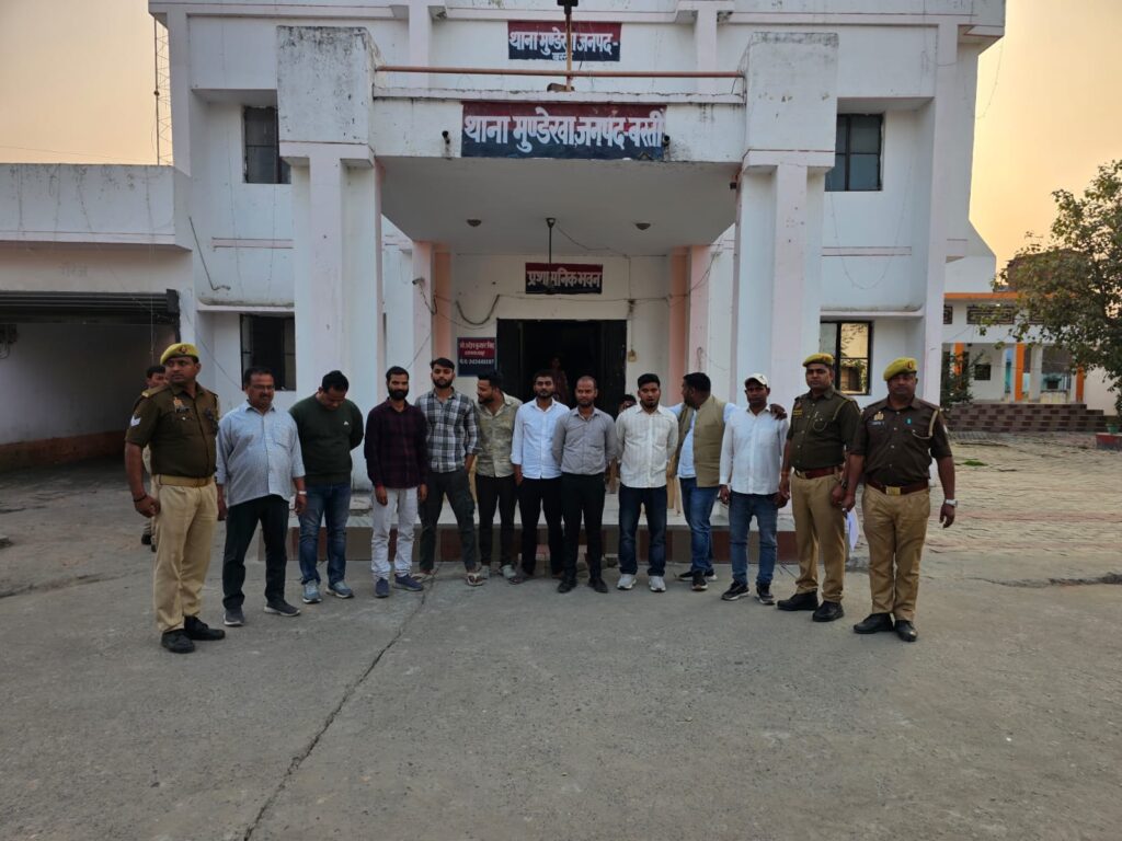 पुलिस अधीक्षक डा0 यशवीर सिंह के स्पष्ट निर्देशों के अनुपालन में, अपर पुलिस अधीक्षक श्यामकान्त के मार्गदर्शन तथा क्षेत्राधिकारी रूधौली कुलदीप सिंह यादव के कुशल पर्यवेक्षण में थानाध्यक्ष प्रदीप कुमार सिंह के नेतृत्व में मुण्डेरवा पुलिस टीम ने 23 फरवरी को यह निर्णायक कार्रवाई सुनिश्चित की। पुलिस द्वारा सभी अभियुक्तों के विरुद्ध भारतीय नागरिक सुरक्षा संहिता (BNSS) की धारा 170/126/135 के अंतर्गत विधिक कार्यवाही करते हुए उन्हें मा० न्यायालय उप जिला मजिस्ट्रेट सदर बस्ती के समक्ष प्रस्तुत किया गया।