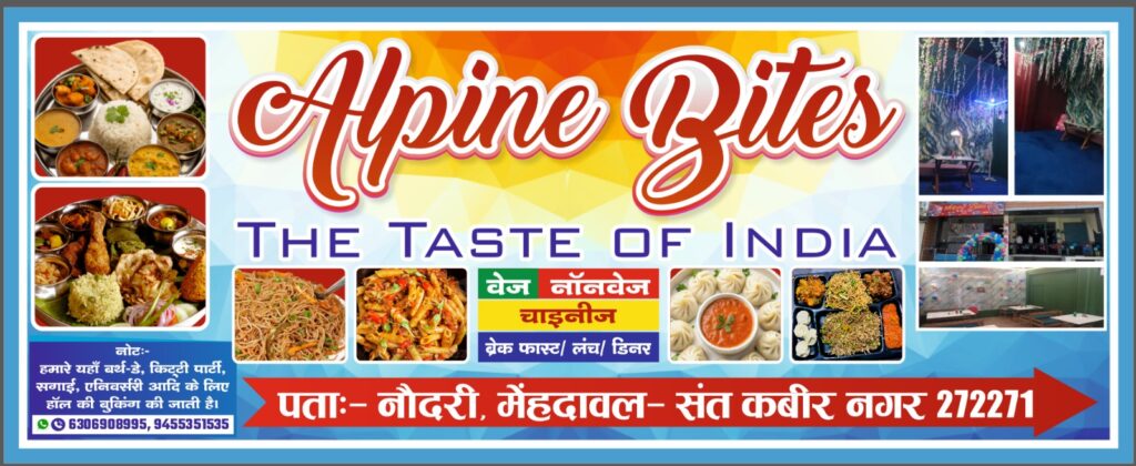 संत कबीरनगर।अल्पाइन बाइट्स रेस्ट्रेन्ट में भव्य व्यवस्था के साथ ओपनिंग किया गया है।सिध्दीविनायक काम्पलेक्स में रेस्टोरेंट”। अल्पाइन बाइट्स रेस्टूरेन्ट के प्रोपराइटर शोभित कुमार चौरसिया ने अल्पाइन बाइट्स रेस्ट्रेन्ट के बारे में बताया – कि हमारे यहां वेज-नान वेज खाने के सभी प्रकार के व्यंजन उपलब्ध मिलेंगे और जन्मदिवस, किटटटी पार्टी आदि के लिये हमारे यहां मेहदावल की नौदरी में उच्च स्तरीय व्यवस्था है। इस संबंध में बेहतर व्यवस्था के बारे में राजेश गिरी ने बताया कि मेहदावल में पहली बार ऐसा रेस्टोरेंट खोला गया है बाहर से आने वाले व्यक्ति खाने का बेहतर व्यवस्था रहने का व्यवस्था खोजने थे लेकिन मेहदावल में सुविधा नहीं थी।जिसको लेकर के अल्पाइन व्हाइट रेस्टूरेन्ट नौदरी में खुला है आप सभी से निवेदन है एक बार सेवा का अवसर दें।और रेस्टोरेंट की तरक्की की कामना की। उक्त मौके पर सिद्धिविनायक परिसर के मालिक त्रिभुवन प्रसाद चौरसिया, चिंतामणि मिश्रा ,अमर गिरी,सुरेंद्र यादव,इत्यादि गणमान्य लोग मौजूद रहे |