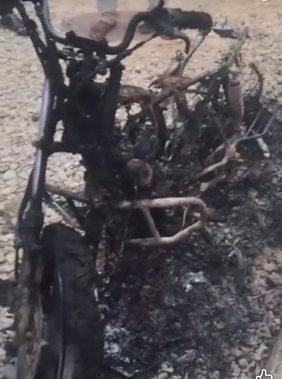 घर के बाहर खड़ी नगर निगम ठेकेदार के मुंशी की बाइक धू धू कर जली सुबह वाहन मलिक को पता चला तो होश उड़ गए